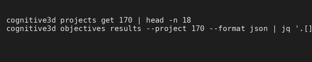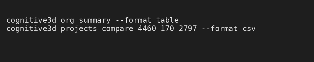 It also matters for AI-assisted workflows. The CLI's responses are compact and structured, making them well-suited for use with LLMs and AI agents, including Cognitive3D's own MCP server. Where the MCP server supports flexible, conversational queries, the CLI is optimized for cases where you already know what you need and want the answer with minimal token usage.