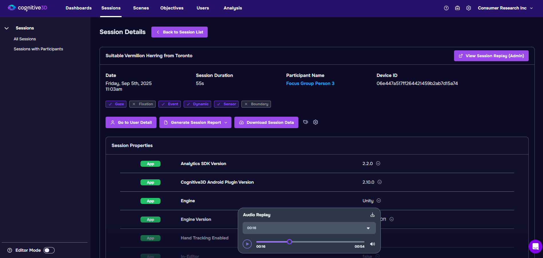 Together, microphone and in-app audio recording provide a richer layer of context that complements Cognitive3Dβs existing analytics; helping teams understand not just where users were looking or moving, but also what they heard and what they said at critical points in the experience.